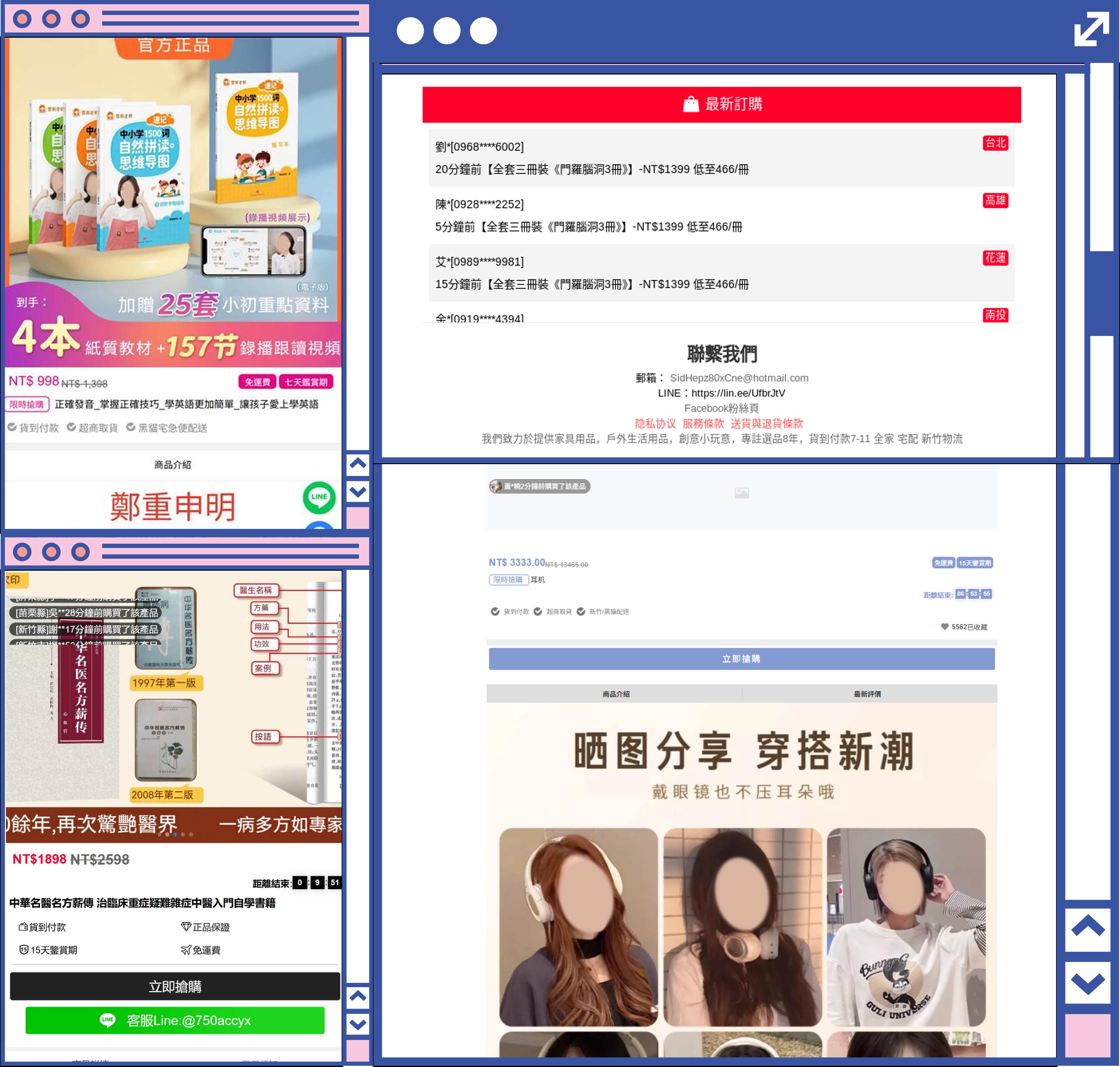 🧵混用簡體字與中國用語的假購物網:有些詐騙網站會混用簡體字、簡轉繁錯字或中國用語,讓消費者誤以為是跨境平台或官方授權通路。實際上,這是混淆視聽的手法之一,購物前可多檢查網站語言與客服資訊是否合理。