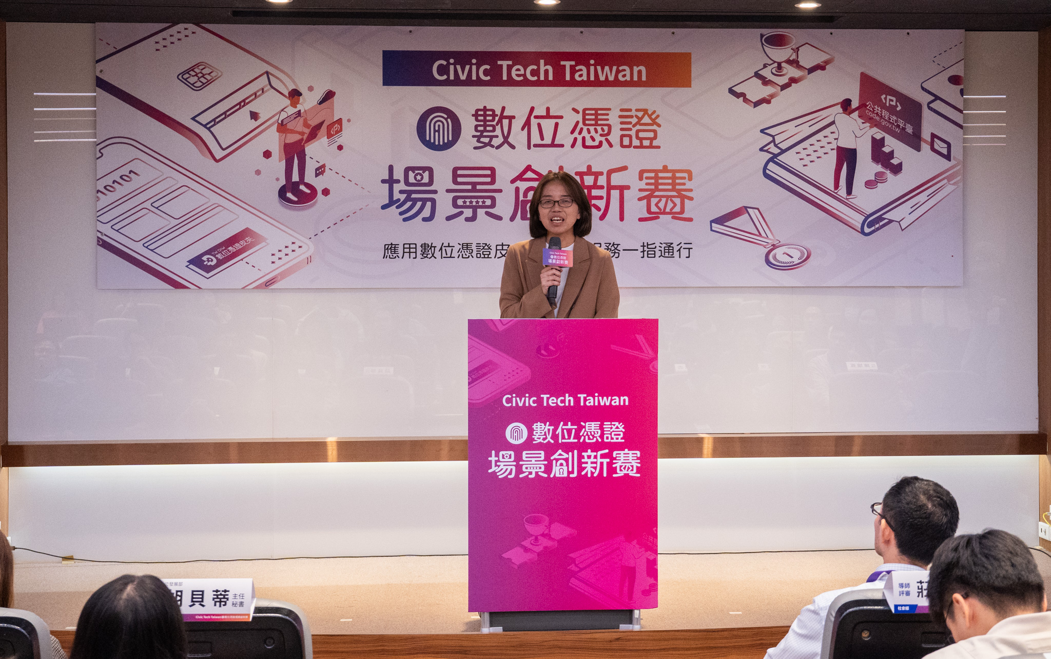 數位發展部今(24)日舉辦「Civic Tech Taiwan-數位憑證場景創新競賽」,以「數位憑證皮夾」為核心主題,結合公民科技精神,鼓勵全民參與數位轉型實踐。本次競賽共有24支隊伍、超過50位設計師、學生與社會人士組隊參賽,經過技術輔導與嚴謹評選後,社會組、學生組各有6組團隊脫穎而出,展現民間創新與公共數位服務結合的實踐力。